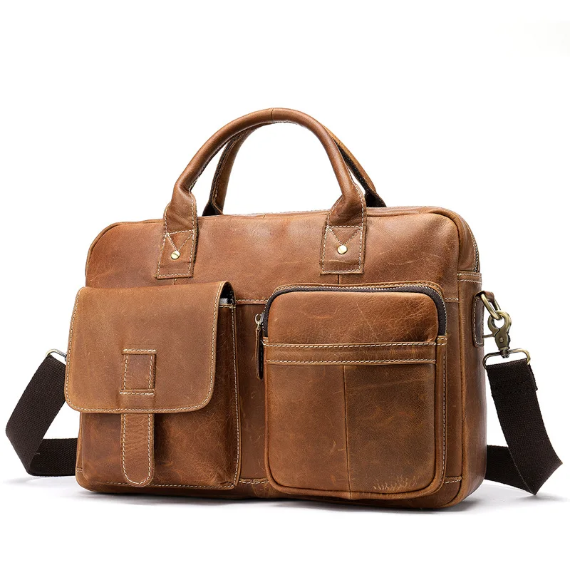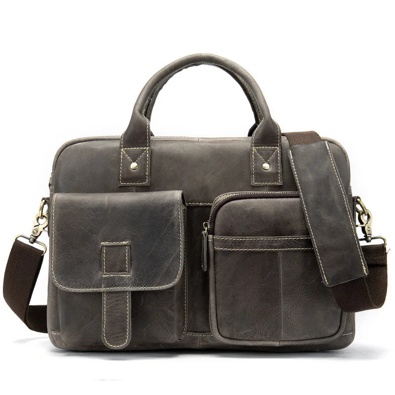 • Special Cow Leather Briefcases Vintage Crazy Horse Leather Laptop Bag Men Genuine Leather Messenger Bags Ma
